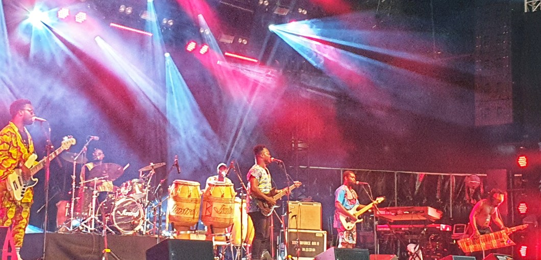 Fra Ulvers harde, kalde klubbunivers, til Ghanesisk house, som det kalles i programmet. Bandet heter Santrofi, og skal være ganske ferske. De spiller derimot som om de skulle være garvede dansemusikere, med den tilgjengeligjorte tradisjonsmusikkens fortegn og såvel over- og undertoner lokale popsjangre fra det sene seksti- og syttitall.