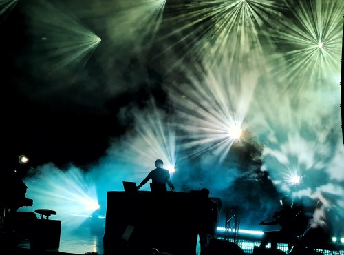 Og tilbake og frem igjen. Jon Hopkins vekslet mellom å sitte ved flygelet, ofte akopagnert av en fiolinist, en cellist og el-gitarist, og å stå bak miksebordet.
