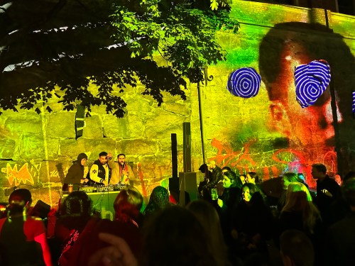 Biji laget jammen en skikkelig fest til. Her i forgården, på gatediskoen.